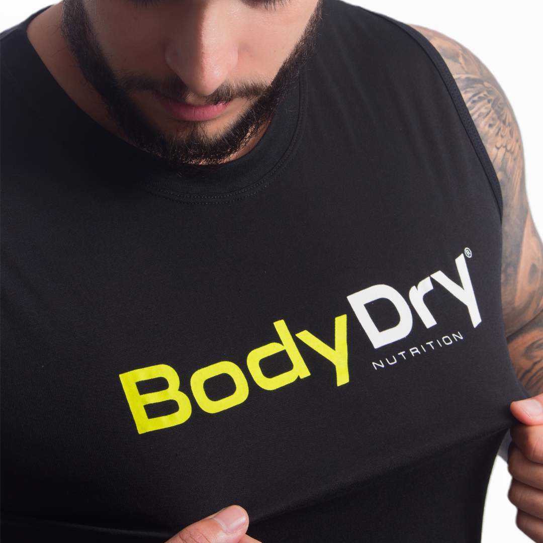 A Regata Manchão da Body Dry Nutrition foi feita para quem vive com intensidade e quer se sentir bem — seja nos treinos ou no dia a dia. Confeccionada com uma composição inteligente de 50% poliéster e 50% algodão, ela une o melhor dos dois mundos: o toque macio e natural do algodão com a durabilidade e praticidade do poliéster.